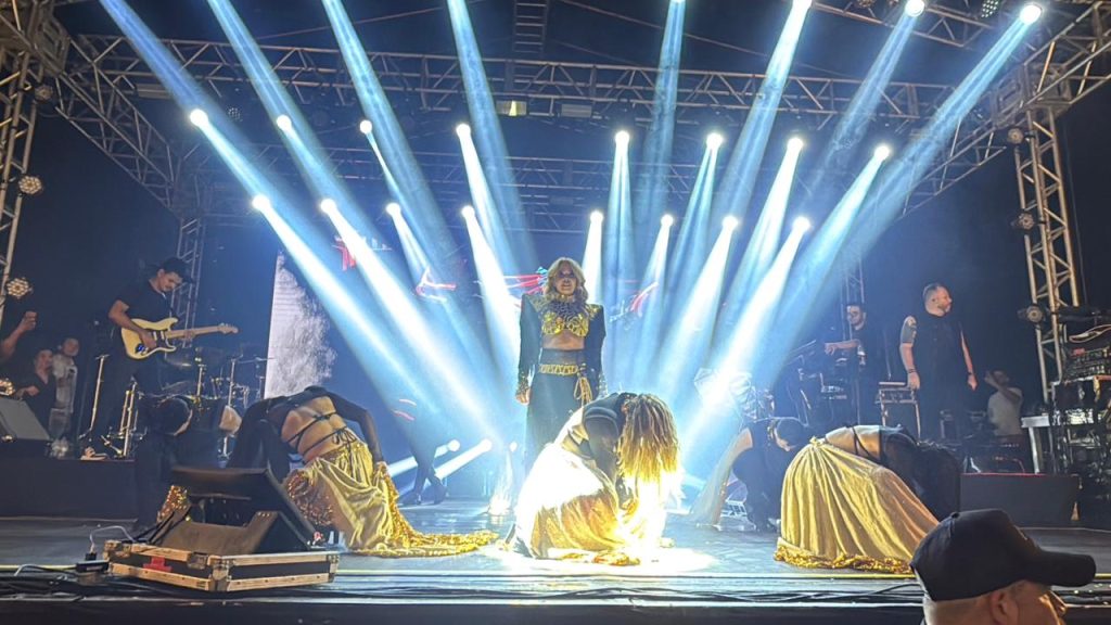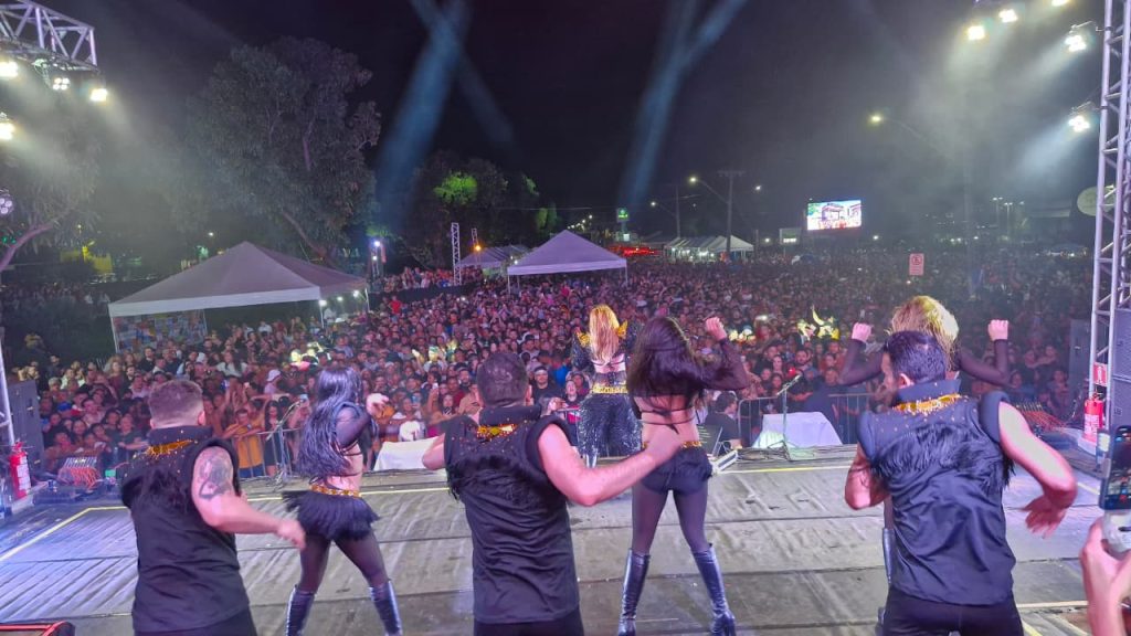 Mesmo após um dia intenso de atividades, a prefeita esteve presente e participou ativamente de toda a programação noturna. Em um dos momentos mais marcantes, subiu ao palco para recepcionar a artista principal da noite, destacando a importância da celebração para a população e o orgulho de proporcionar um evento dessa dimensão para o município.